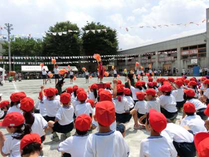 赤組も白組も勝利をめざし、団長を中心に、心を合わせた力強い元気いっぱいの応援が繰り広げられました。