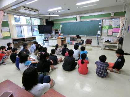 今日は、1年生の2学級と5年生の3学級で読み聞かせをしていただきました。各教室に2人の方が担当してくださり、本の紹介をしていただきました。子どもたちは、楽しく面白いお話を、興味深く聴き入っていました。