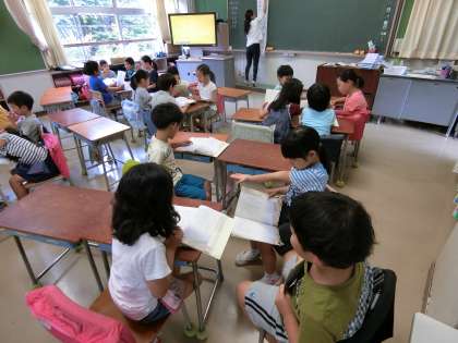 今日の1校時、2年3組の教科「日本語」の学習では、高村光太郎作「あどけない話」を題材に、日本語の響きやリズムを楽しみながら、作品の情景や作者の思いを想像しながら、楽しく取り組んでいました。