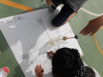 というテーマで、今日は太陽と影の動きの実験をしました。
