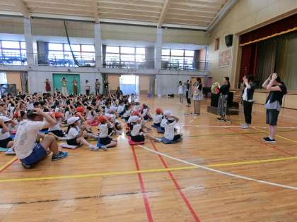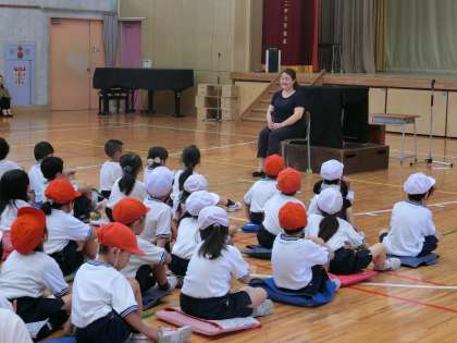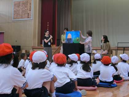 2・3校時には、1年生・2年生・3年生を対象とした「大きなお話会」が体育館で開かれました。日頃からお世話になっている、お放しポケット・桜丘図書館・本校図書館司書の皆様が、手遊びや大型絵本の読み聞かせ、語りや大型紙芝居などの楽しい企画と演出をしてくださり、楽しく見たり聞いたり身体を動かしたりする機会となりました。