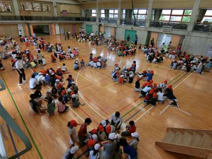 楽しい顔や面白い顔ができ上がり、歓声に沸く集会となりました。