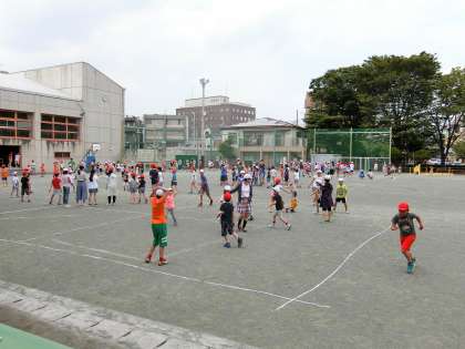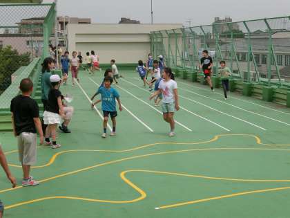 給食の片付けをみんなで行い、楽しみにしていた「笹の子班遊び」の活動場所に移動し、遊びの計画にもとづいて6年生がリードし、校庭・体育館・屋上で楽しく遊びました。