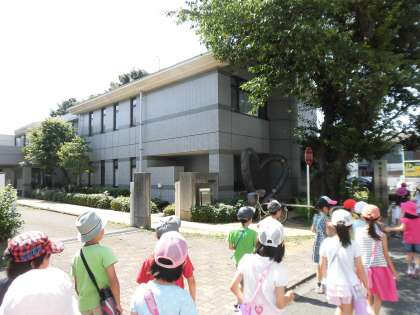 2年生の生活科で1,2時間目、町たんけんに行きました。日差しが強く気温が高い中、がんばって歩きました。