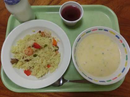 パエリアとはスペインの言葉で「フライパン」を意味します。専用のパエリア鍋は両手に取っ手のある平底の浅くて丸いフライパンで、これにたっぷりの具を入れて炒め、米と水と調味料を加えて炊きあげます。地中海に面しているスペインは、ヨーロッパのなかでも魚介類の消費量が多い国だそうです。そのため、パエリアにはよくエビやイカ、貝などが入っています。今日のパエリアにはなにが入っているでしょうか?具だくさんでうまみも栄養もたっぷりのパエリアを味わって食べてください。