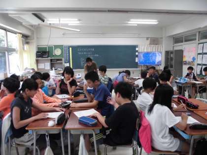 教材のDVDの前半部分を視聴し、「自分がつらい気持ちになったとき、それを軽くするために、どのようなことをしていますか。」「友達がつらそうにしている時、それを軽くしてあげるために、どのようなことをしていますか。」について考え、意見を交換し、まとめに後半のDVDを視聴しました。自分たちの考えた様々な方法の他にもやり方がいくつか紹介された後、おすすめの一つとして「身近にいる信頼できる大人に相談すること。」「けれども、信頼できる大人に出会うのは、実は単変なことであること。」が紹介されました。そして、「だから、少なくとも3人の大人に話してみましょう。」と結んでいました。