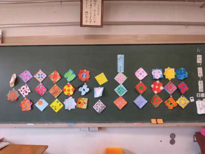 を学習した後、折り紙を使って飾りを作りました。