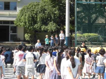 今日の全校朝会の校長先生のお話しは、「良心」についてでした。自分が正しいと思うところに従って行動することの大切さをお話しされました。続いて、新しく入った友達の紹介がありました。先週から今日にかけて3人の友達が増えました。仲良くしていきましょう。6年生による笹の子スピーチは2人のスピーチがありました。話したことは、「ラジオ体操について」と「インコについて」です。ラジオ体操の歴史や目的、インコの種類やそれぞれの違いなど、例を挙げて分かりやすく話していました。