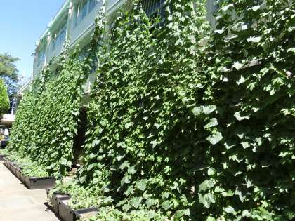 今日の給食のフレンチサラダに、笹原小学校のグリーンカーテンと4年生の畑で採れたきゅうりを使用しました。違いがわかるよう、八百屋さんで買ったきゅうりは小口切りに、笹原小学校で採れたきゅうりは半月切りにしました。子どもたちは半月切りのきゅうりを探しながら食べて、自分のサラダに半月切りのきゅうりを見つけると、うれしそうに食べていました。