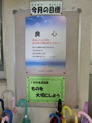 全校朝会で子どもたちに話しましたが、7月の人格の完成をめざしてのテーマは「良心」です。