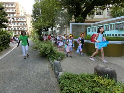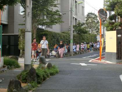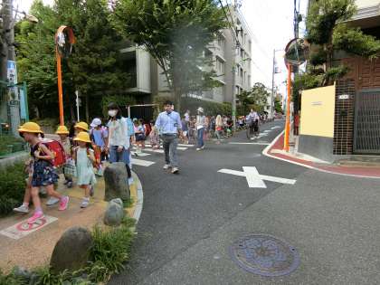 本校では各学期に一度、地区班での登下校の日を設けて実施しています。