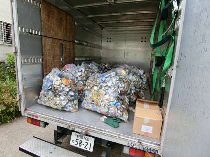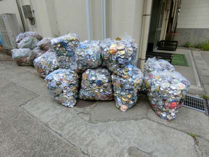 PTAの活動の1つとして取り組んでいる「アルミ缶の回収」。