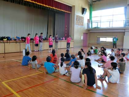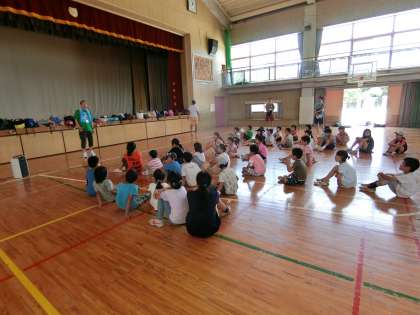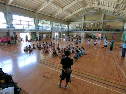 当初体育館での合宿(お泊り体験)を予定していましたが、厳しい暑さと熱中症予防のため合宿は中止し、急きょプログラムを変更して実施することになりました。