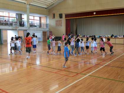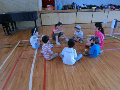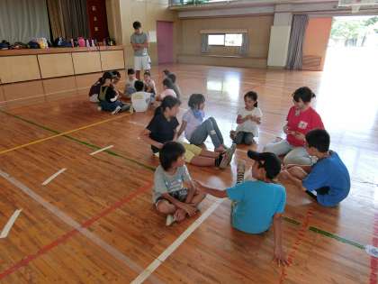 東京農業大学の6名の学生さんが6つの各班を担当し、上級生がリーダー役を務める初めての顔合わせの班ですが、普段とは違う遊びをみんなで仲よく楽しんでいます。
