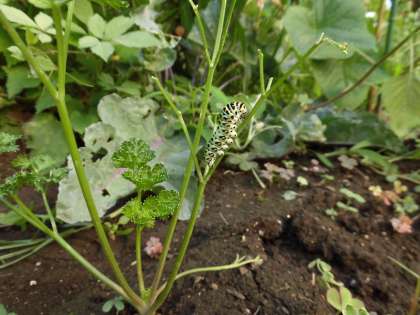 2枚目の写真は、パセリについたキアゲハの幼虫です。