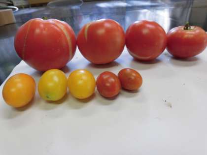 3枚目の写真は、今日の収獲です。トマトがいっぱい採れました。
