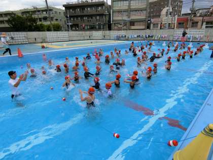 今日も、高学年・中学年・低学年の順で、3階に分けて水泳教室を実施しました。参加した子どもたちは、元気いっぱいです。泳いだり、浮いたり、水遊びをしたり、楽しい時間をプールで過ごしていました。