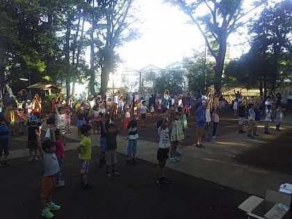 子どもたちがたくさん参加し、保護者の方々とともに、元気いっぱい体操を行っていました。