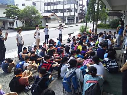 東照宮から徒歩で、宿舎に着きました。子どもたちは、暑さにも負けず、元気に移動しました。