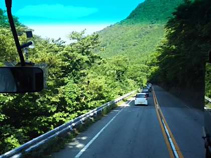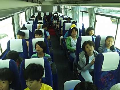 バスガイドさんの説明を聴いたり、クイズに答えたりしながら、楽しんでいます。