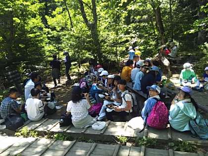 男体山を眺めながら、楽しく会話をしながら、休憩を兼ねて過ごしました。