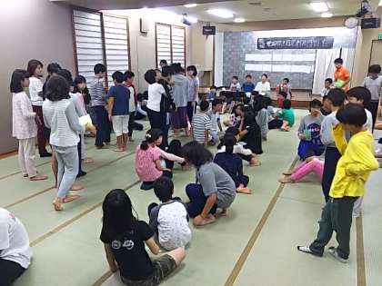 7時から8時までの約1時間、大広間で、レク係が中心となって、室内レクリエーションを行いました。