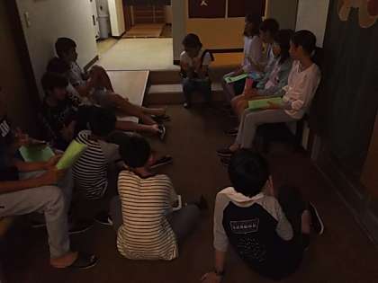 8時45分から、1階ロビーで、行動班と生活班の班長会、そして寝具係の打ち合わせを行いました。