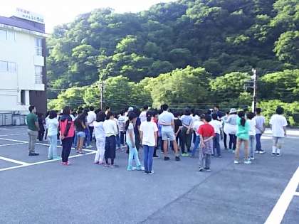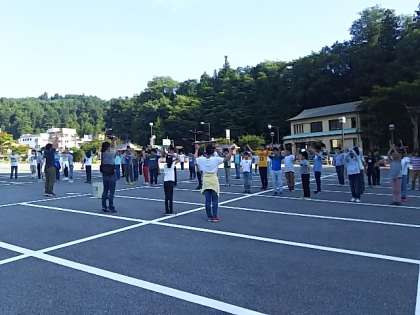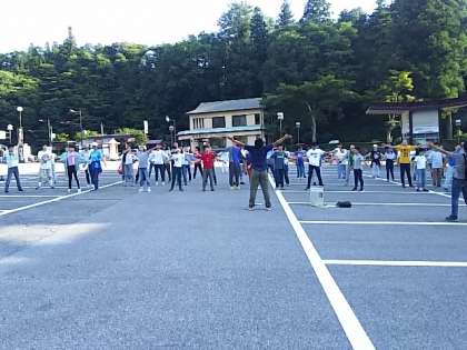 朝の集いを昨日と同じ日光市総合会館駐車場で行いました。