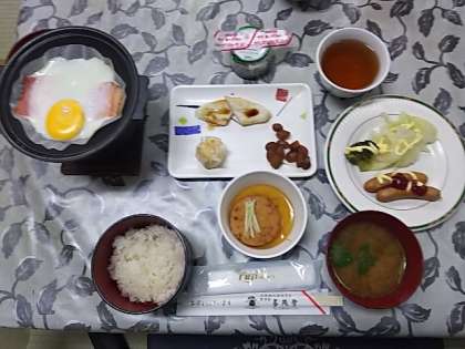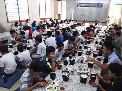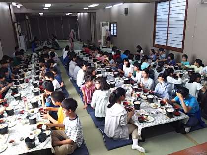 宿舎での最後の食事です。食欲も旺盛です。楽しい会話とともに、食事が進んでいます。
