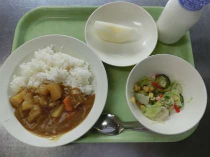 いよいよ新学期が始まりましたね。みなさん、夏休みはいかがでしたか?たくさん学んで、たくさん遊ぶことができたでしょうか。2学期も元気に学校生活を送れるように、はじめの給食はカレーライスにしました。しっかり食べて勉強も遊びも一生懸命がんばりましょう。