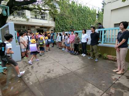 あいさつ週間2日目です。昨日に引き続き、5年生有志のみなさんがあいさつキッズとして学校運営委員の方々や担任の先生と一緒に、朝のあいさつの声かけを率先して行っていました。とても活気のあるあいさつが、正門を中心に交わされ、気持ちのよい学校生活がスタートしています。
