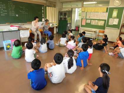 子どもたちは、日本語で「うんとこしょ どっこいしょ」と言った後に、「チャーネット パチャーネット」と言って、楽しそうに唱えていました。