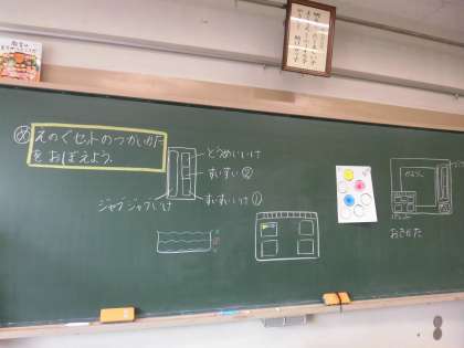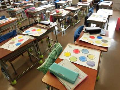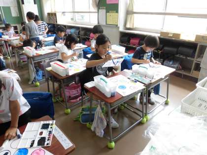 昨日(9/13)は、1年3組で初めて絵の具を使いました。