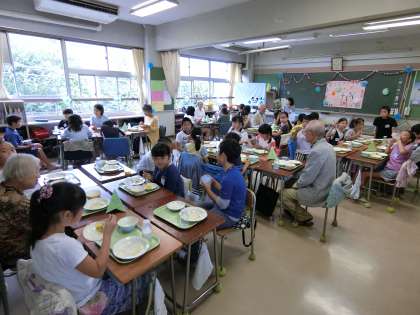 最後には一緒に給食を食べながら、歓談を楽しみました。