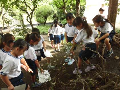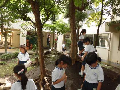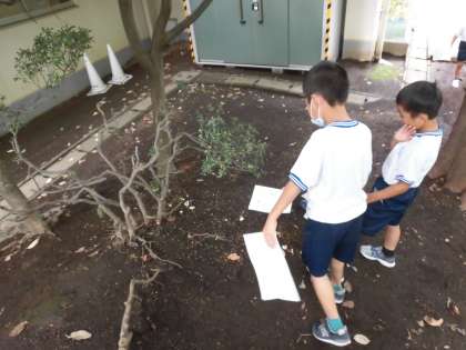 昨日、図画工作の時間に子どもたちがつくっている「パフェ」の材料探しをしました。