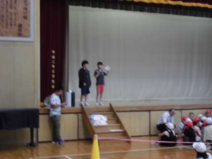 最後の合計は青の勝ちでした。今日の集会で前期集会委員の仕事は終わりとなります。前期集会委員のみなさん、「いつでも朝から楽しい集会」ありがとうございました。後期の集会委員の計画する集会も楽しみにしています。