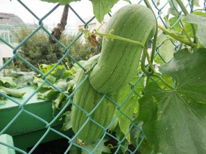 中にはフェンスに絡みついて(フェンスを突き破って?)大きく実っているヘチマもありました!