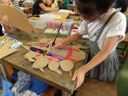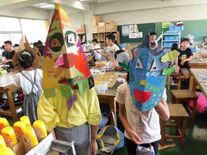 「原始時代から色々な地域で仮面が作られていたんだね。」と、世界の仮面を鑑賞してから活動が始まりました。