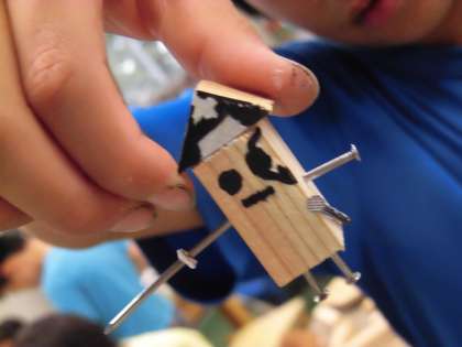どんなところに冒険へ行く船がいいかな?と考えながら、木を切って組み合わせ、形にしていきます。
