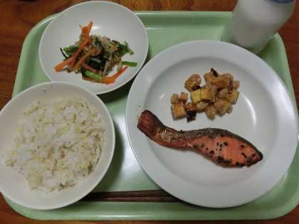 桃太郎が鬼退治のおともにしたのは、なんでしょうか?猿・犬・きじのほかにもうひとつあります。正解はおばあさんの作ってくれたきび団子ですね。この「きび」のおかげで桃太郎は大切な仲間を得ることができました。その「きび」のほかに大麦・あわなどを雑穀といい、今日の給食の雑穀ごはんに入っています。犬や猿・きじがほしがるほどおいしく、鬼退治に持っていくほど栄養豊富で力が出るきびなどの雑穀は、みなさんにもパワーをくれます。よく噛んでしっかり食べてください。