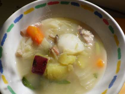 サツマイモやキノコがたっぷり入った秋色ポトフは、冬に食べるポトフとはひと味違う味わいでした。