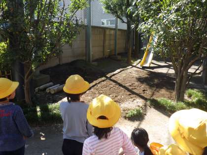 今日の午前中に、1年生はポプラが植えてあった跡地を見に行きました。1年生がよく遊んでいたすべり台のすぐそばにあった木なので、跡地を見つめる子どもたちの後ろ姿も寂しそうです。