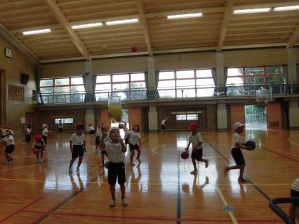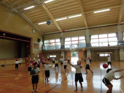 初めて体育でボールを使った1年生は、とても楽しそうに活動していました。