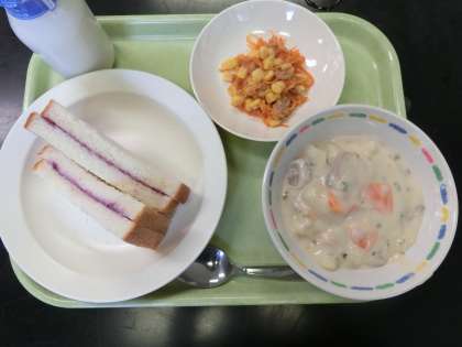 今日10月10日は何の日か知っていますか?2つの10という数字を横に回転して見ると、まゆげと目に見えることから、「目の愛護デー」と定められました。食べ物も目の健康に関わっています。ジャムサンドのブルーベリージャムに入っているブルーベリーには、目を守るはたらきのあるアントシアニンが含まれています。にんじんサラダには、目の健康を保つカロテンがたくさん含まれています。