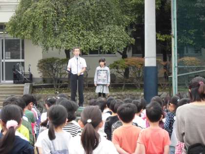このところ月曜日を含む3連休が続いていたため、久しぶりの月曜全校朝会がありました。最初の校長先生のお話は、本校の5年生が子ども読書リーダー(子ども司書)講座を修了したことについてのお話しでした。区内で50人いる修了者の一人です。小さな子への読み聞かせが楽しかったと話していました。学校でもぜひ役立ててほしいです。