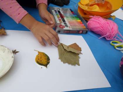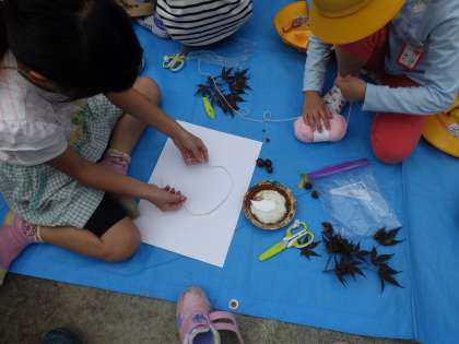 集めた「秋のもの」を使っておもちゃを作ったり、絵を描いたり、子どもたちは思い思いに秋を満喫していました!