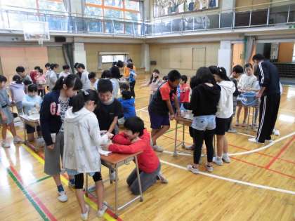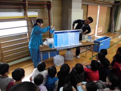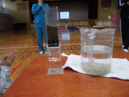 社会科で学習している水道についての学びを深めるために、水道キャラバンをお招きしました。どうやって自分たちのところにきれいで安全な水が送られてくるのかについて、お話を聞いたり、実験したりしながら学びました。