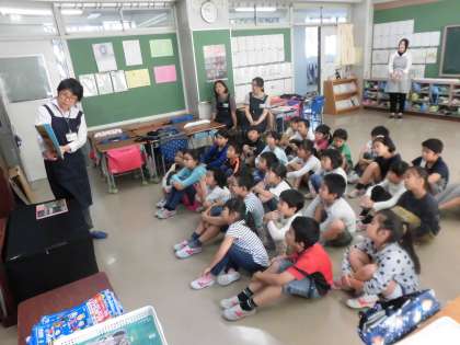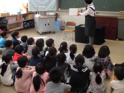 桜丘図書館の方々が来て、「お話会」を開いてくれました。