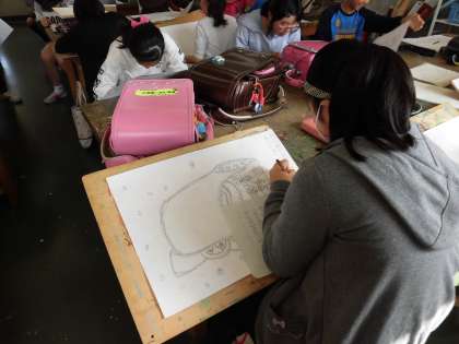 先輩たちの作品を見てきた6年生は、ずっとこの題材にあこがれを持っていたようで、真剣にランドセルと向き合っていました。