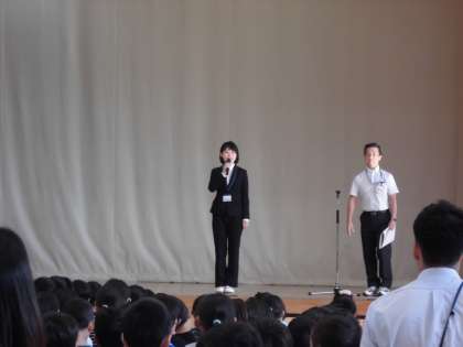 今週の目標は「マナーやルールを守って行動しよう」です。看護当番の先生から、特に、遊ぶときの譲り合いや登下校時の道の歩き方について、気を付けていきましょうというお話がありました。